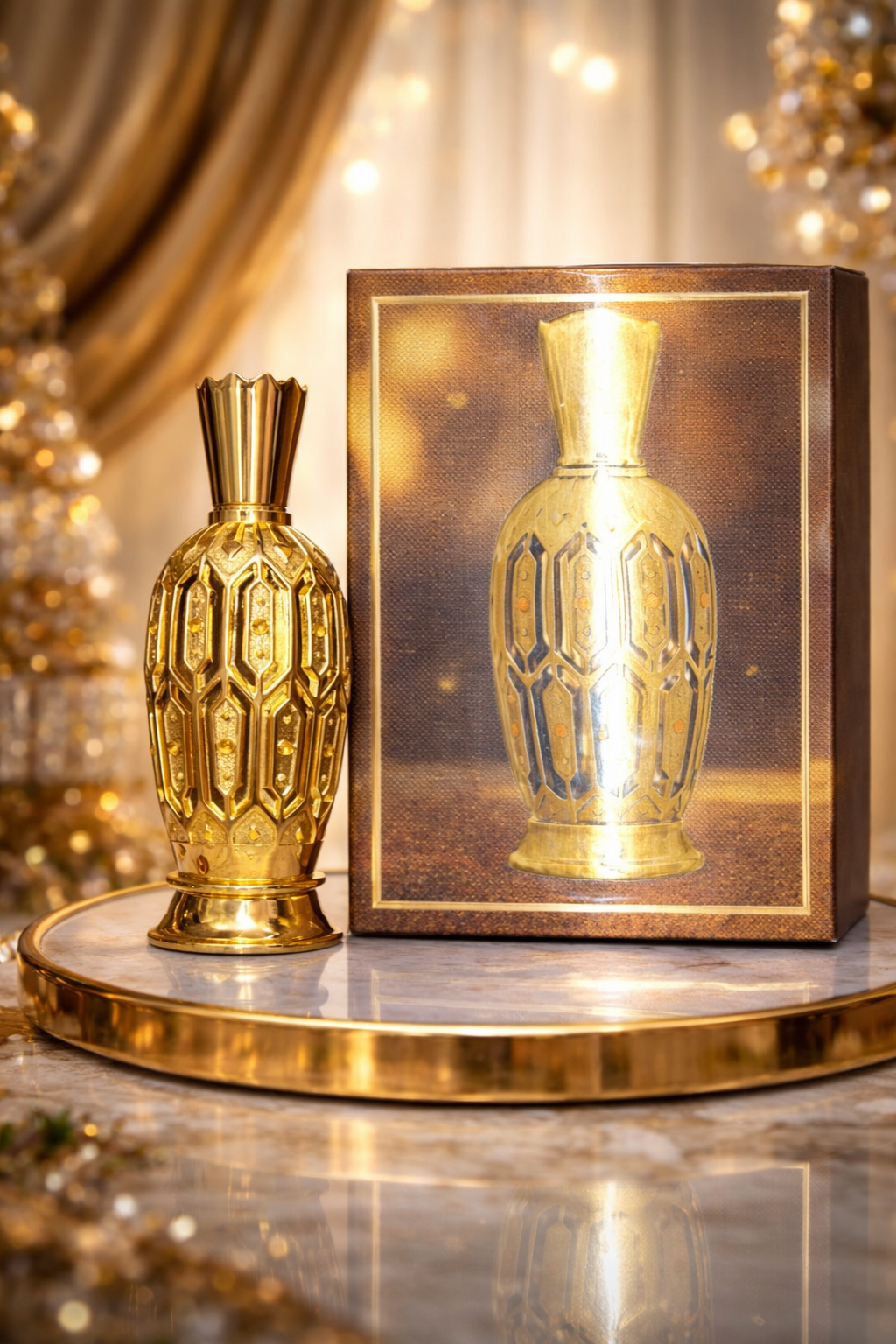 Golden Desert Essence is a luxurious Arabian fragrance inspired by the beauty and mystery of the desert. Encased in an intricately designed gold bottle, this perfume reflects elegance, tradition, and sophistication. The fragrance delivers a rich and long-lasting scent that blends warm oriental notes with subtle sweetness, making it perfect for special occasions and daily luxury wear.
